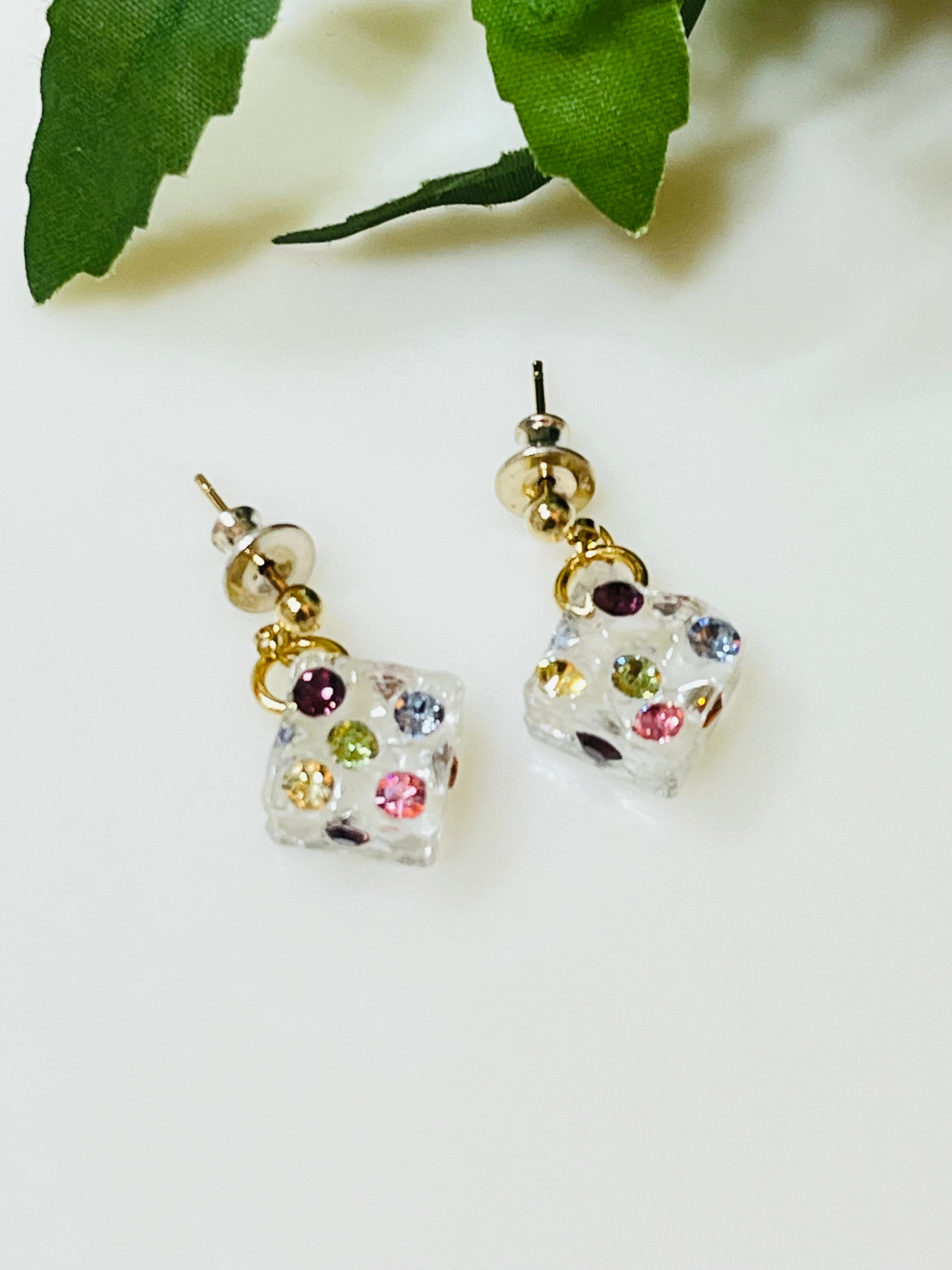 ドミノマルチにゴールドの金具をつけました。ゴールドフィルドドミノマルチネックレスに合わせられるピアスとなっております。