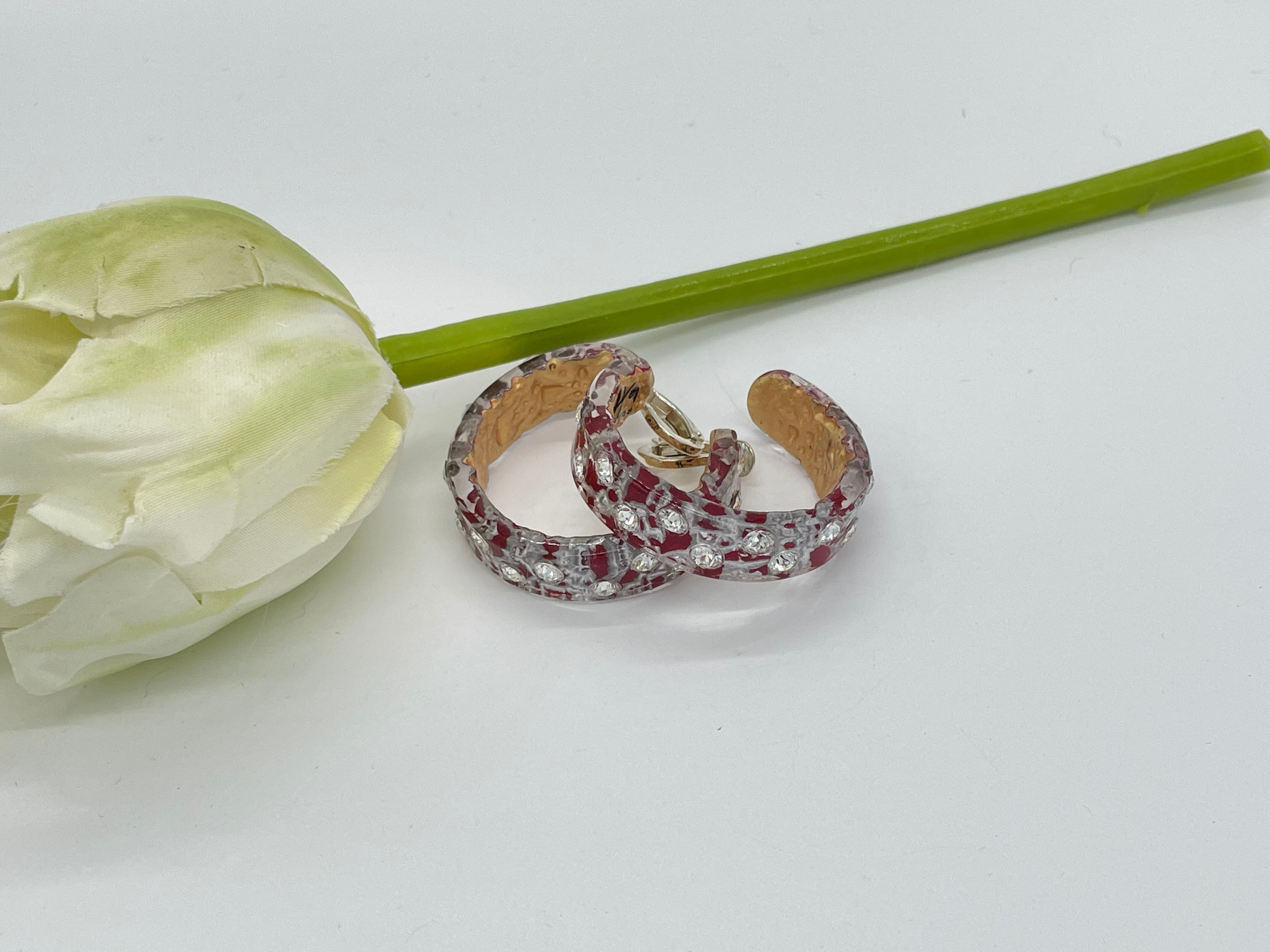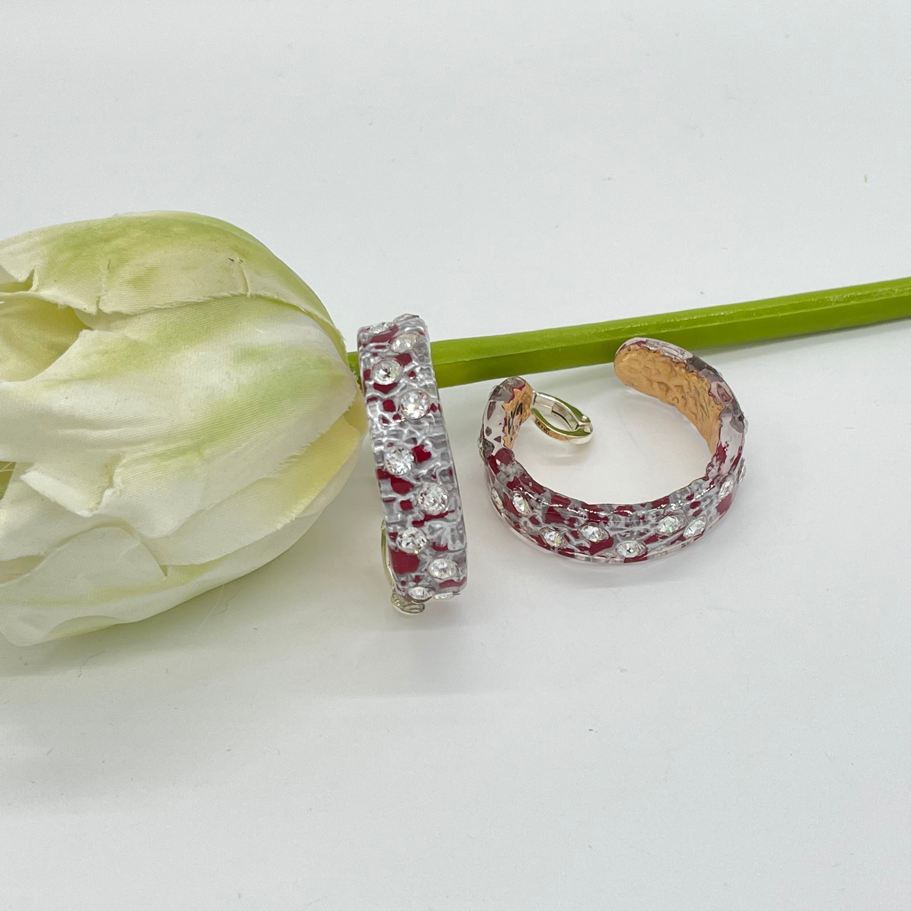 レッドにシルバーをまぶしたモナーク柄にダイヤのクリスタルガラスをあしらったデザイン。レッドとシルバーのバランスが良くカジュアルにもゴージャスにも活用いただけます。